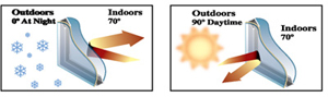 In the summer Low-E glass reflects the sun's heat away from the home. In the Winer LowE reflects radiant heat back in.